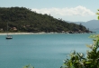 A praia tem a melhor vista da Ilha do Arvoredo, e suas ondas fracas não oferecem perigo às crianças.